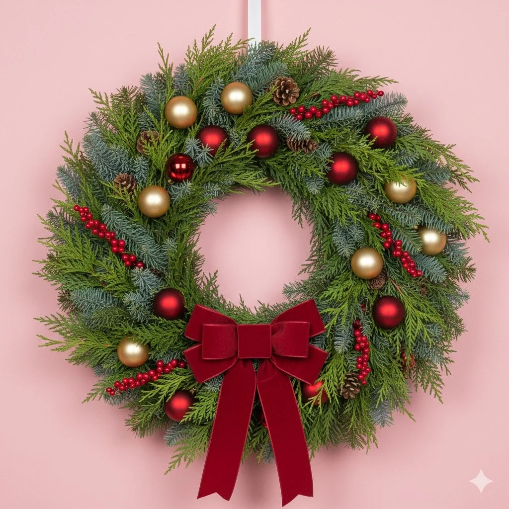 Note: Wreath fullness and decorative details may vary slightly due to natural materials, but the overall look and feel will remain consistent and beautifully designed.