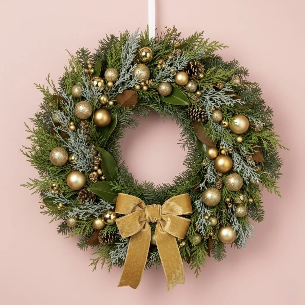 The Holiday Edit is our modern take on the classic wreath – timeless, full, and styled your way. Choose from our signature palettes: gold, red, silver, natural, or pink, each designed to bring a touch of seasonal magic that feels elevated, not overdone.