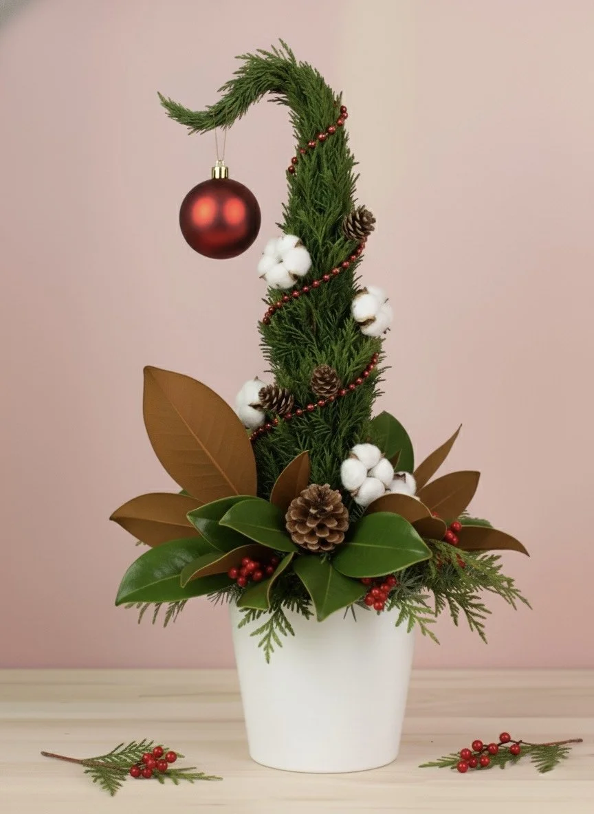 Each one is handcrafted with fresh winter greens, bent into that unmistakable Dr. Seuss–style curl, and dressed up in your choice of gold, red, silver, or natural tones. They’re playful, festive, and a total crowd favourite - perfect for gifting, decorating your entryway, or bringing a bit of Whoville magic home.